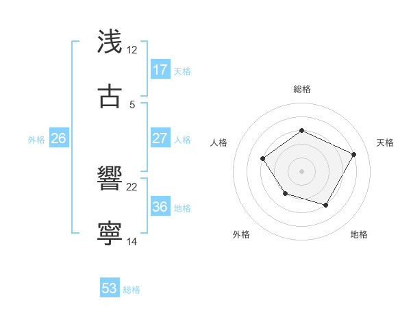 浅古 響寧さんの総格は53画の3点!