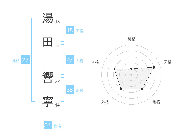 湯田 響寧さんを姓名の画数から五運を鑑定