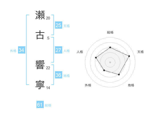瀬古 響寧さんを姓名の画数から五運を鑑定