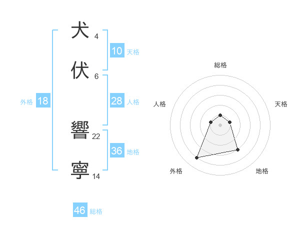 犬伏 響寧さんの総格は46画の1点!