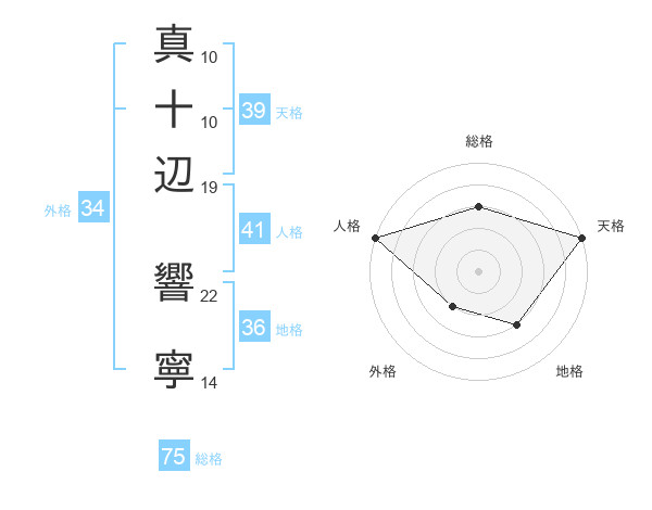 真十辺 響寧さんの総格は75画の3点!
