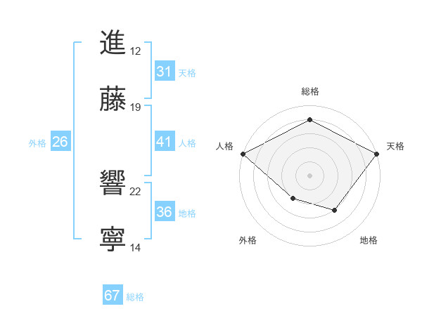 進藤 響寧さんを姓名の画数から五運を鑑定