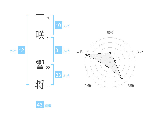 一咲 響将さんの総格は43画の2点!