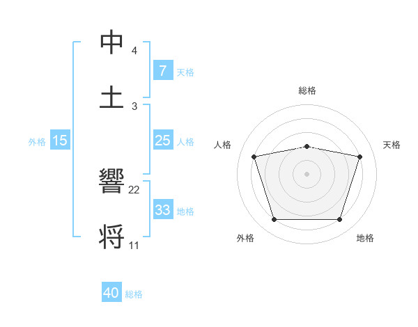 中土 響将さんの総格は40画の2点!
