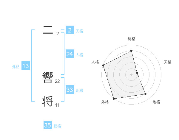 二 響将さんの総格は35画の4点!