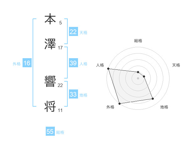 本澤 響将さんの天格は22画の1点!