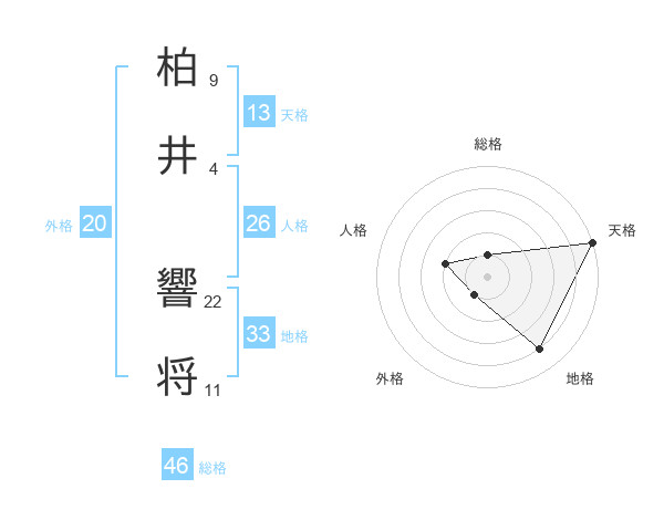 柏井 響将さんの天格は13画の5点!