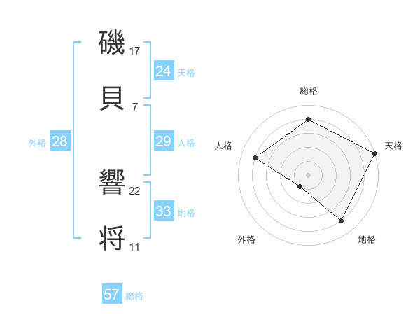 磯貝 響将さんの総格は57画の4点!