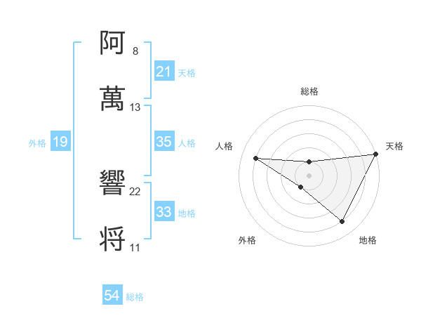 阿萬 響将さんの総格は54画の1点!