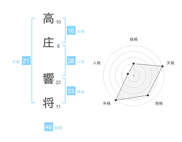 高庄 響将さんの外格は21画の5点!