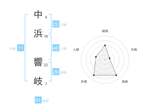 中浜 響岐さんの天格は22画の1点!