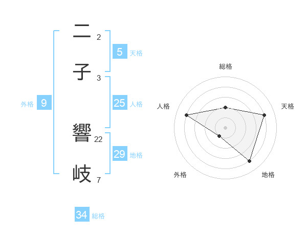 二子 響岐さんの地格は29画の4点!