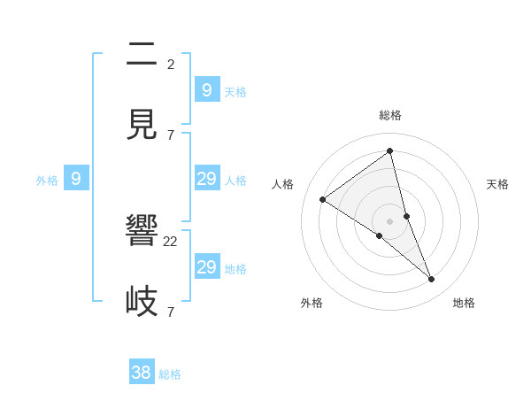 二見 響岐さんの総格は38画の4点!