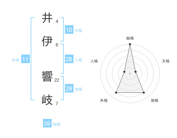 井伊 響岐さんを姓名の画数から五運を鑑定