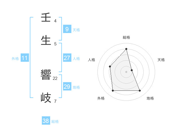 壬生 響岐さんの総格は38画の4点!
