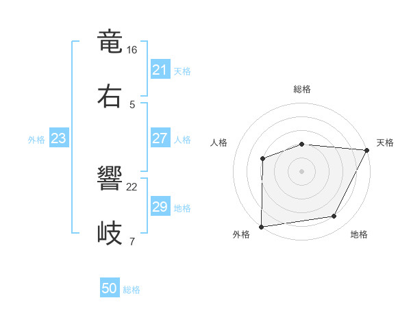 竜右 響岐さんを姓名の画数から五運を鑑定