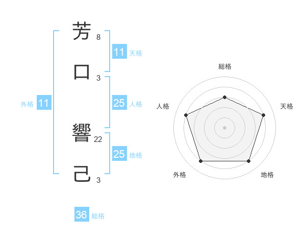 芳口 響己さんの天格は11画の4点!