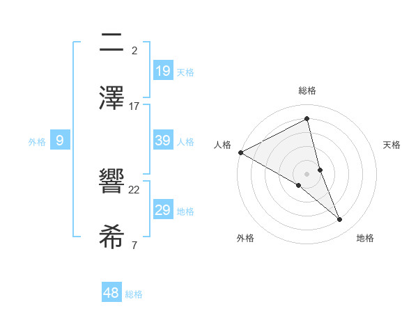 二澤 響希さんの人格は39画の5点!
