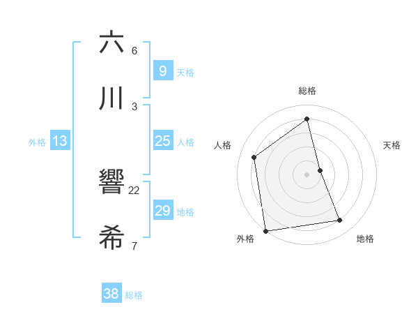 六川 響希さんの総格は38画の4点!