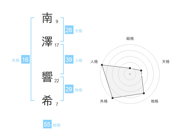南澤 響希さんの総格は55画の1点!