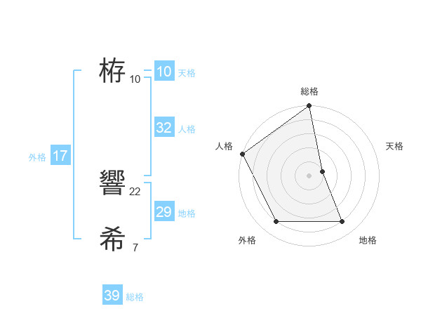栫 響希さんの外格は17画の4点!