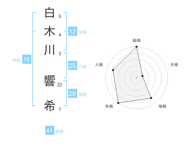 白木川 響希さんの総格は41画の5点!