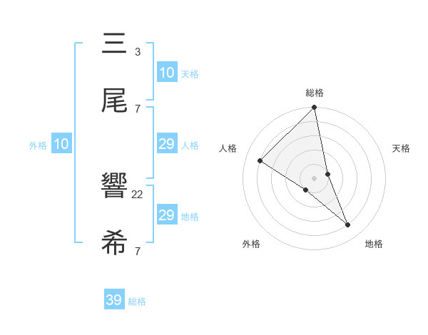 三尾 響希さんの総格は39画の5点!