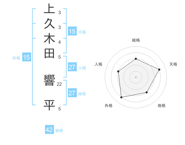 上久木田 響平さんを姓名の画数から五運を鑑定