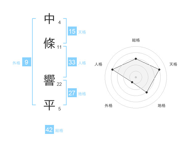 中條 響平さんの総格は42画の3点!
