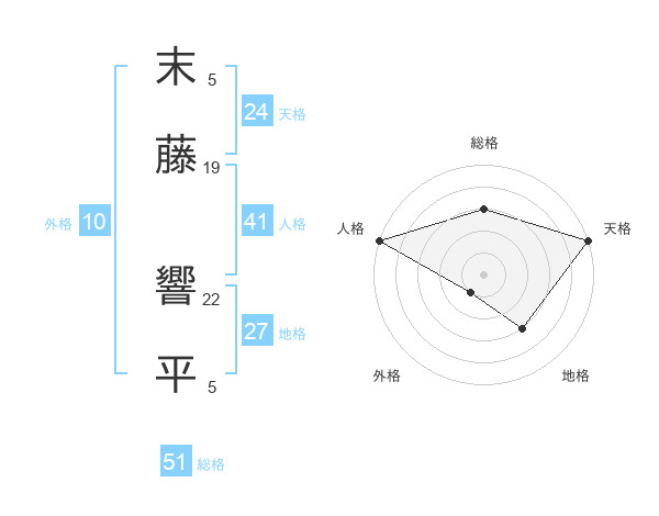 末藤 響平さんの総格は51画の3点!