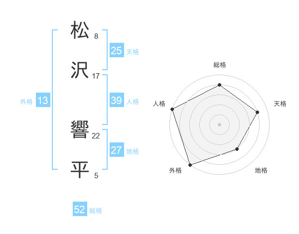 松沢 響平さんの総格は52画の4点!