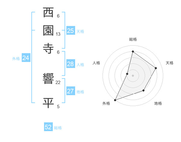 西園寺 響平さんを姓名の画数から五運を鑑定