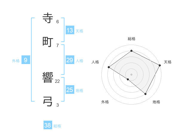 寺町 響弓さんを姓名の画数から五運を鑑定