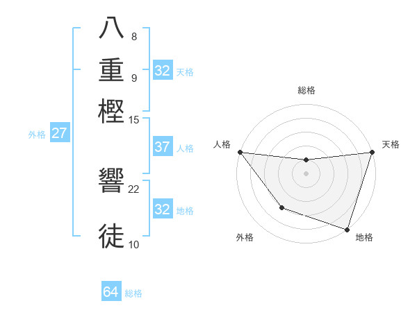 八重樫 響徒さんの地格は32画の5点!