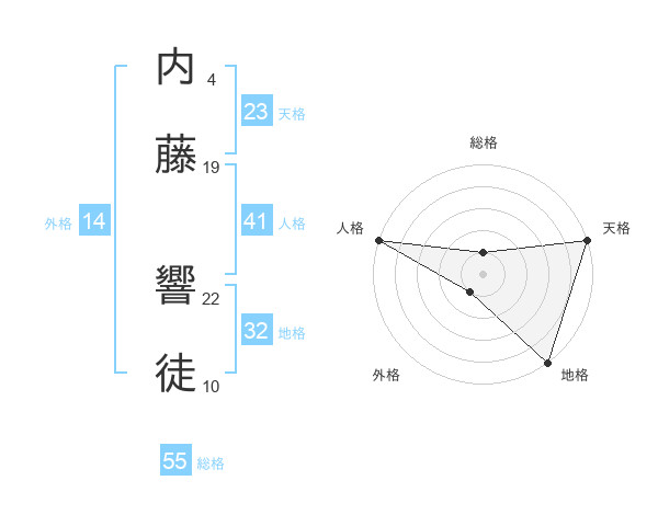 内藤 響徒さんを姓名の画数から五運を鑑定