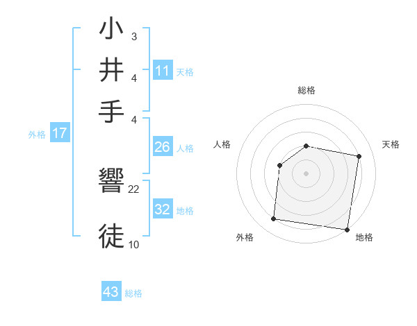 小井手 響徒さんを姓名の画数から五運を鑑定