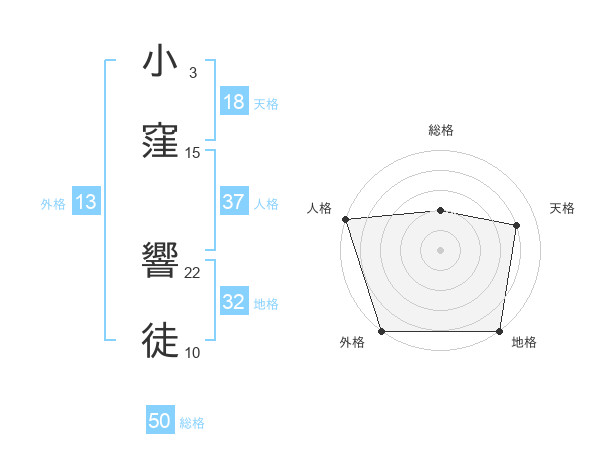 小窪 響徒さんを姓名の画数から五運を鑑定