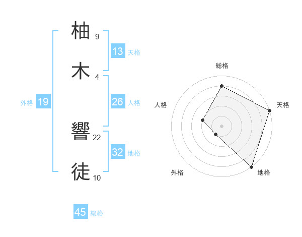 柚木 響徒さんの総格は45画の4点!