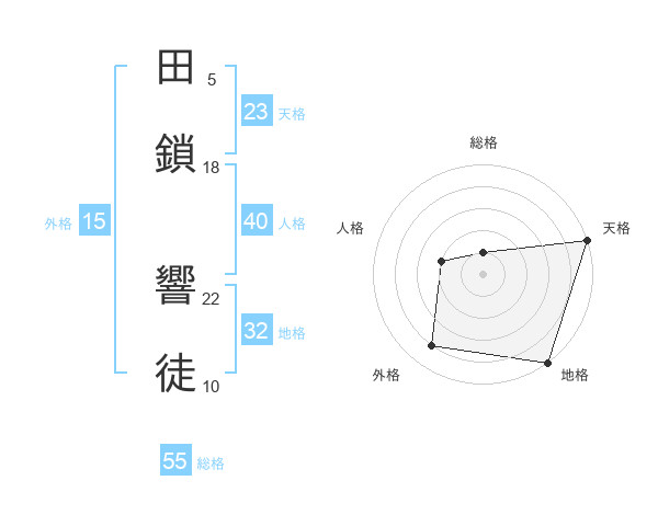 田鎖 響徒さんを姓名の画数から五運を鑑定