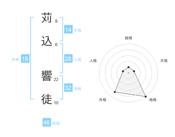 苅込 響徒さんの総格は46画の1点!