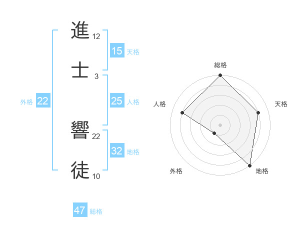 進士 響徒さんの総格は47画の5点!