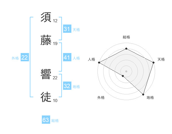 須藤 響徒さんの天格は31画の5点!