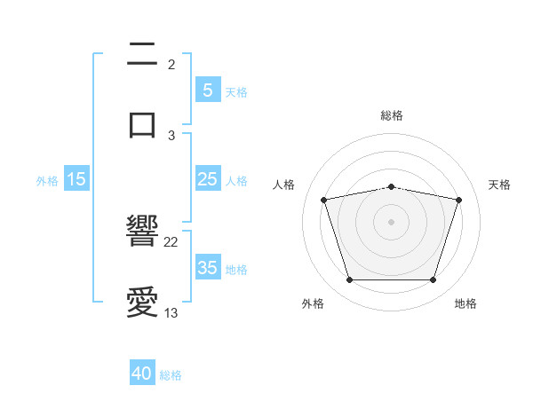 二口 響愛さんの天格は5画の4点!