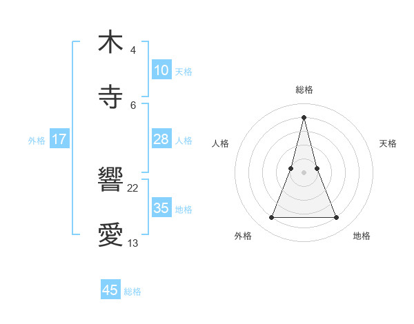 木寺 響愛さんの総格は45画の4点!