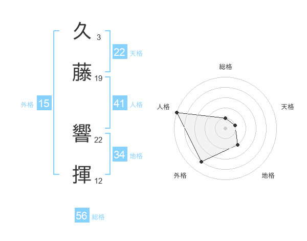 久藤 響揮さんの総格は56画の1点!