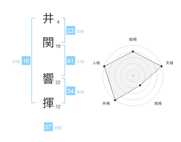 井関 響揮さんを姓名の画数から五運を鑑定