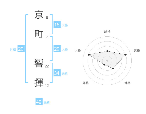 京町 響揮さんの総格は49画の2点!