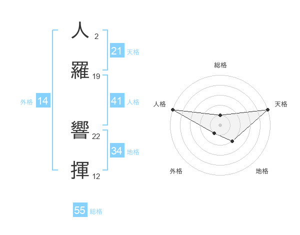 人羅 響揮さんの天格は21画の5点!