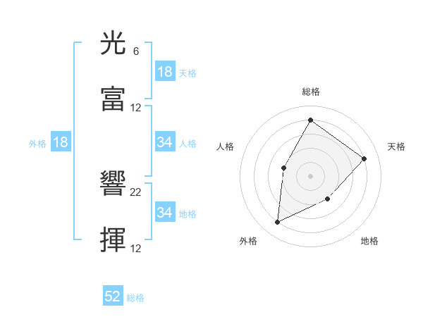 光富 響揮さんの総格は52画の4点!