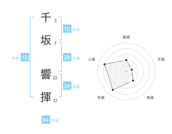 千坂 響揮さんの総格は44画の2点!